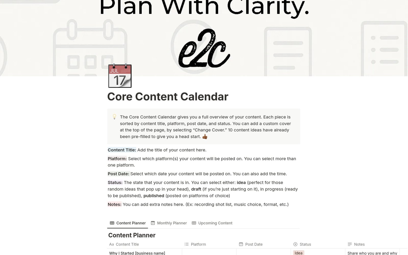 ✔ Pre-filled with 10 starter content ideas